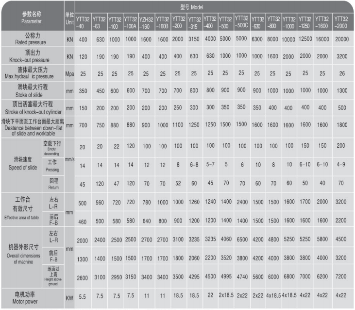 產品介紹:性能特點:計算機優(yōu)化結構設計,三梁四柱式結構,簡單、經濟、實用;液壓控制采用插裝閥集成系統(tǒng),動作可靠,使用壽命長,液壓沖擊小,減少了連結管路與泄漏點;獨立的電氣控制系統(tǒng),工作可靠,動作直觀,維修方便;采用按鈕集中控制,具有調整、半自動兩種操作方式;通